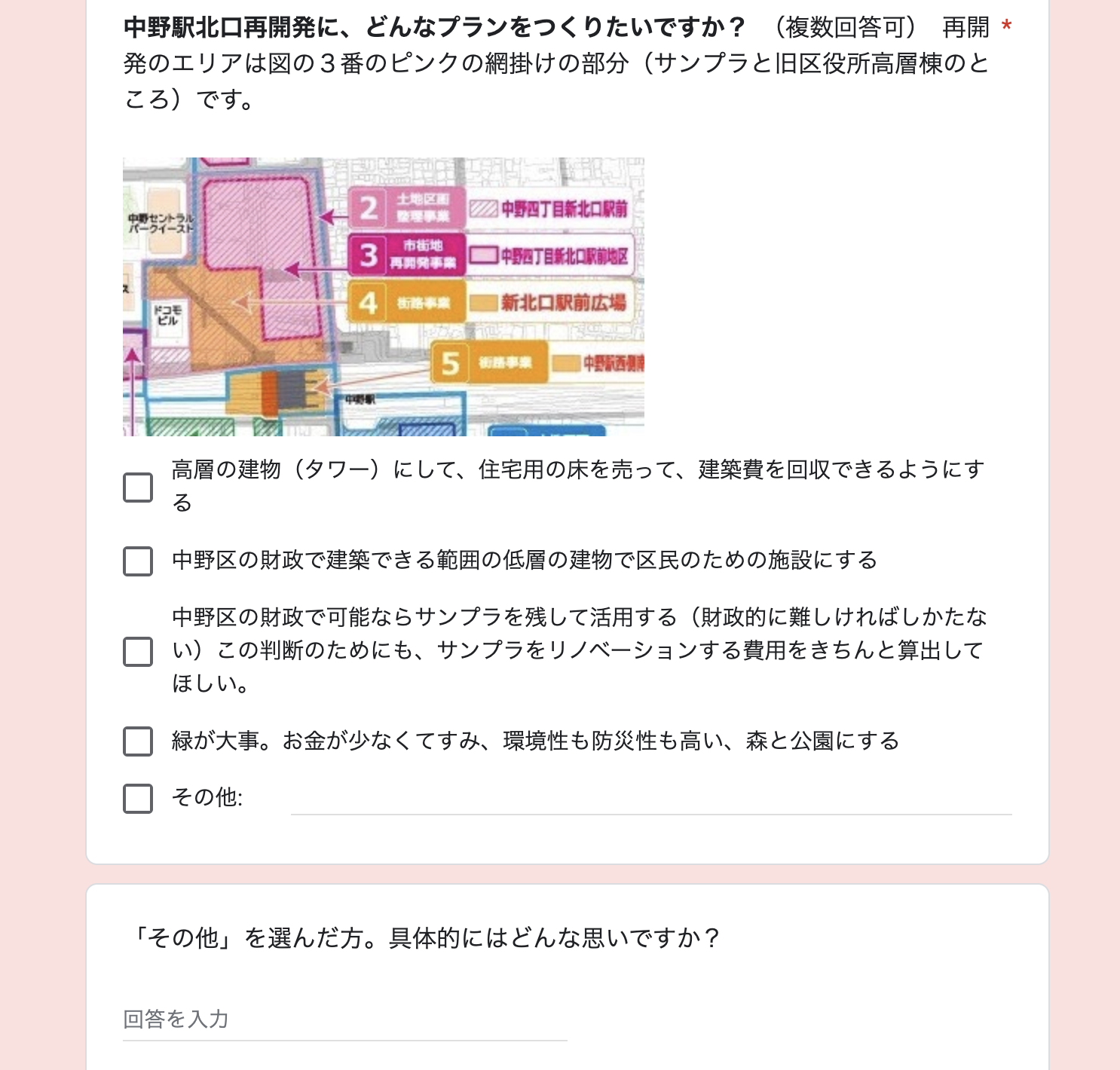 【区民アンケート実施中!】どうする?中野駅北口。どうする?サンプラ。再開発ストップで再検討へ、みんなの声を集めて中野区に届けましょう!