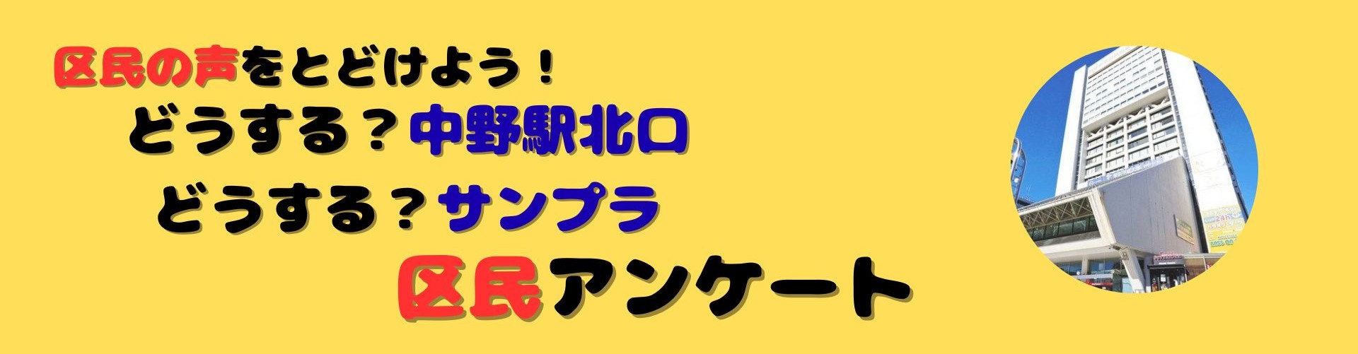 【区民アンケート実施中!】どうする?中野駅北口。どうする?サンプラ。再開発ストップで再検討へ、みんなの声を集めて中野区に届けましょう!